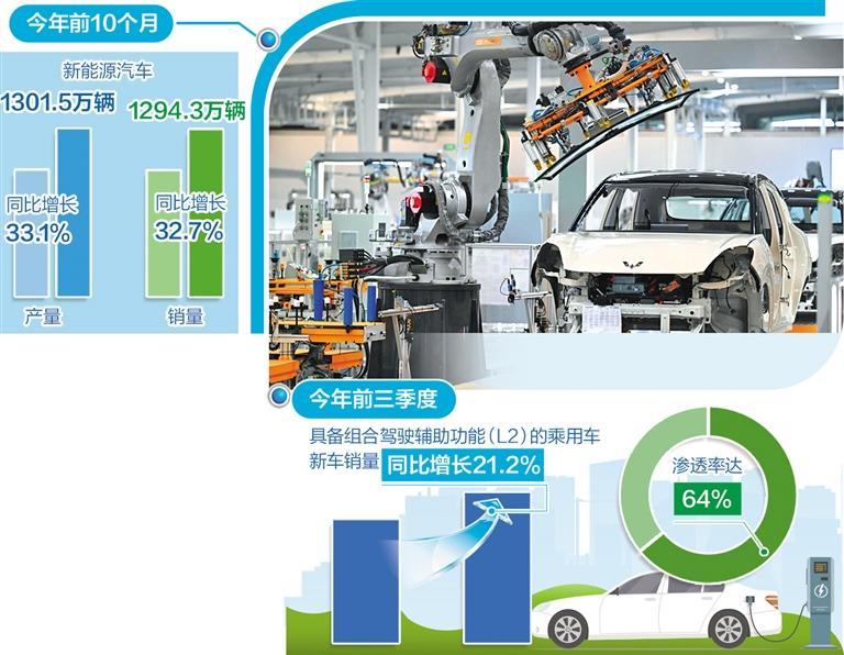 中国汽车工业协会数据显示,今年前10个月,我国汽车产销量分别完成2769.2万辆和2768.7万辆,同比增长均超过10%。其中,新能源汽车产销量分别完成1301.5万辆和1294.3万辆,同比分别增长33.1%和32.7%。