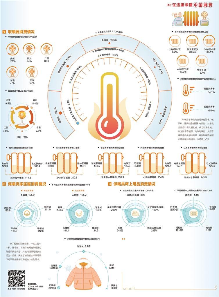 寒潮频袭带动居家取暖需求集中释放,近期取暖消费市场呈现供需两旺态势。消费数据背后折射出功能升级、地域分化与情绪需求主导的市场逻辑,成为冬日消费市场的鲜明底色。