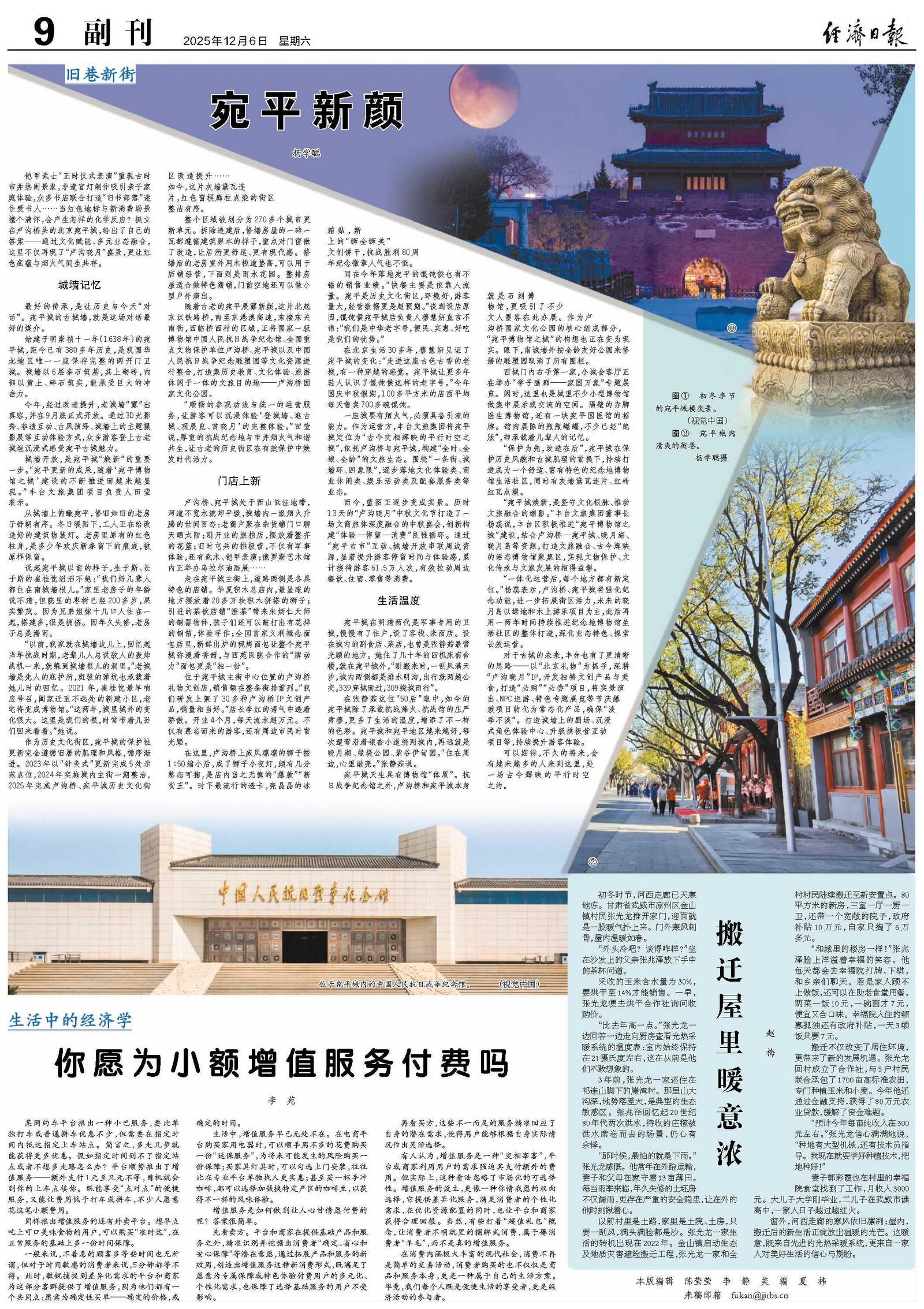 在张静茹这位“50后”眼中,如今的宛平城除了承载抗战烽火、抗战馆的庄严肃穆,更多了生活的温度,增添了不一样的色彩。宛平城和宛平地区越来越好,每次遛弯沿着银杏小道绕到城内,再远就是晓月湖、绿堤公园、紫谷伊甸园。“住在周边,心里敞亮。”张静茹说。
