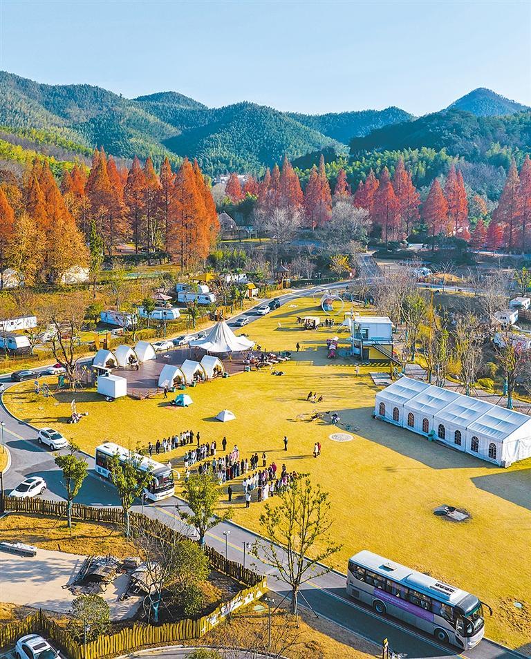 12月6日,安徽省芜湖市繁昌区孙村镇,游客在一处露营地休闲游玩。近年来,繁昌区因地制宜打造农旅融合田园观光综合体,发展乡村旅游业。肖本祥摄(中经视觉)