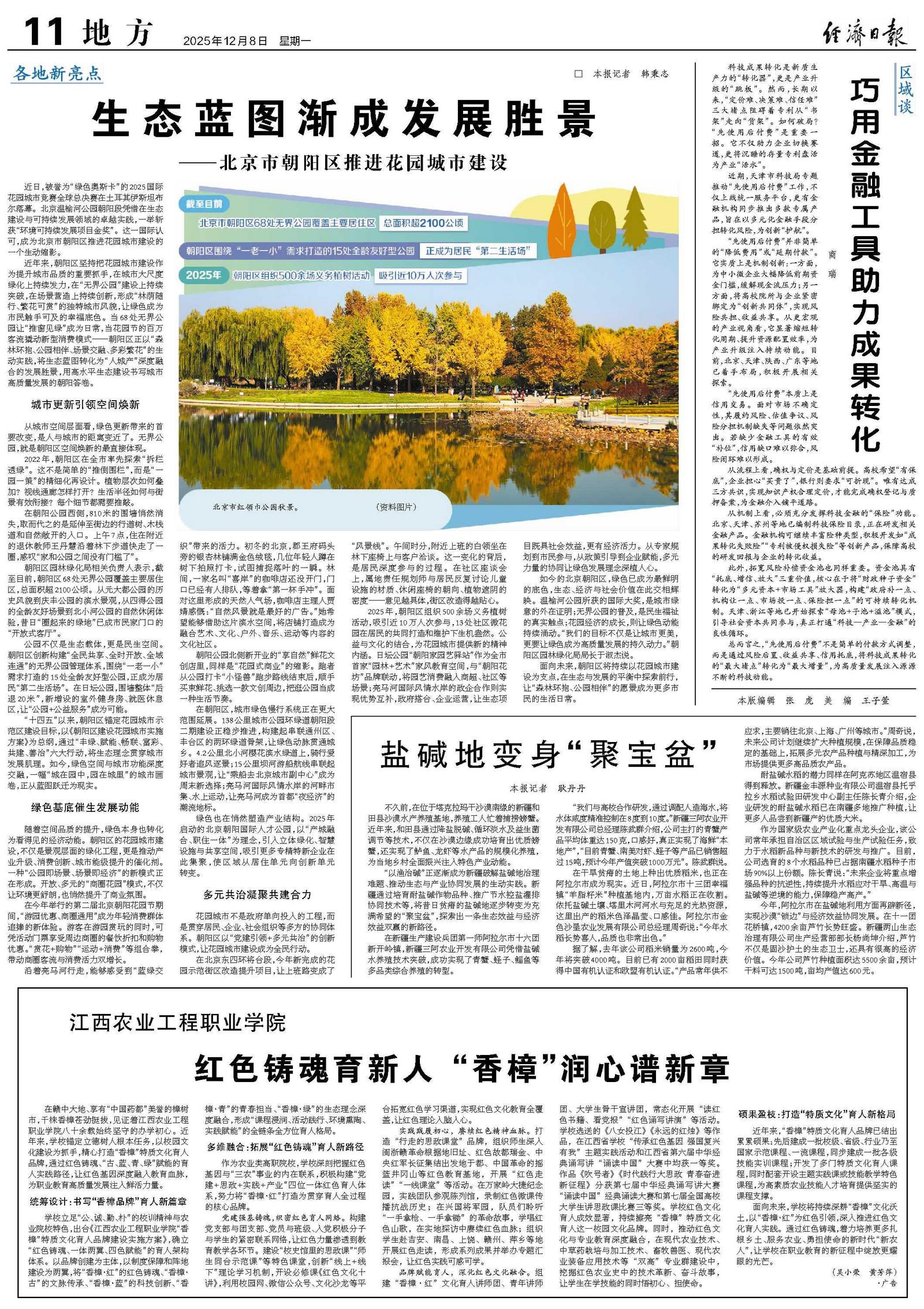 如今的北京朝阳区,绿色已成为最鲜明的底色,生态、经济与社会价值在此交相辉映。温榆河公园所获的国际大奖,是城市绿意的外在证明;无界公园的普及,是民生福祉的真实触点;花园经济的成长,则让绿色动能持续涌动。“我们的目标不仅是让城市更美,更要让绿色成为高质量发展的持久动力。”朝阳区园林绿化局局长于淑杰说。