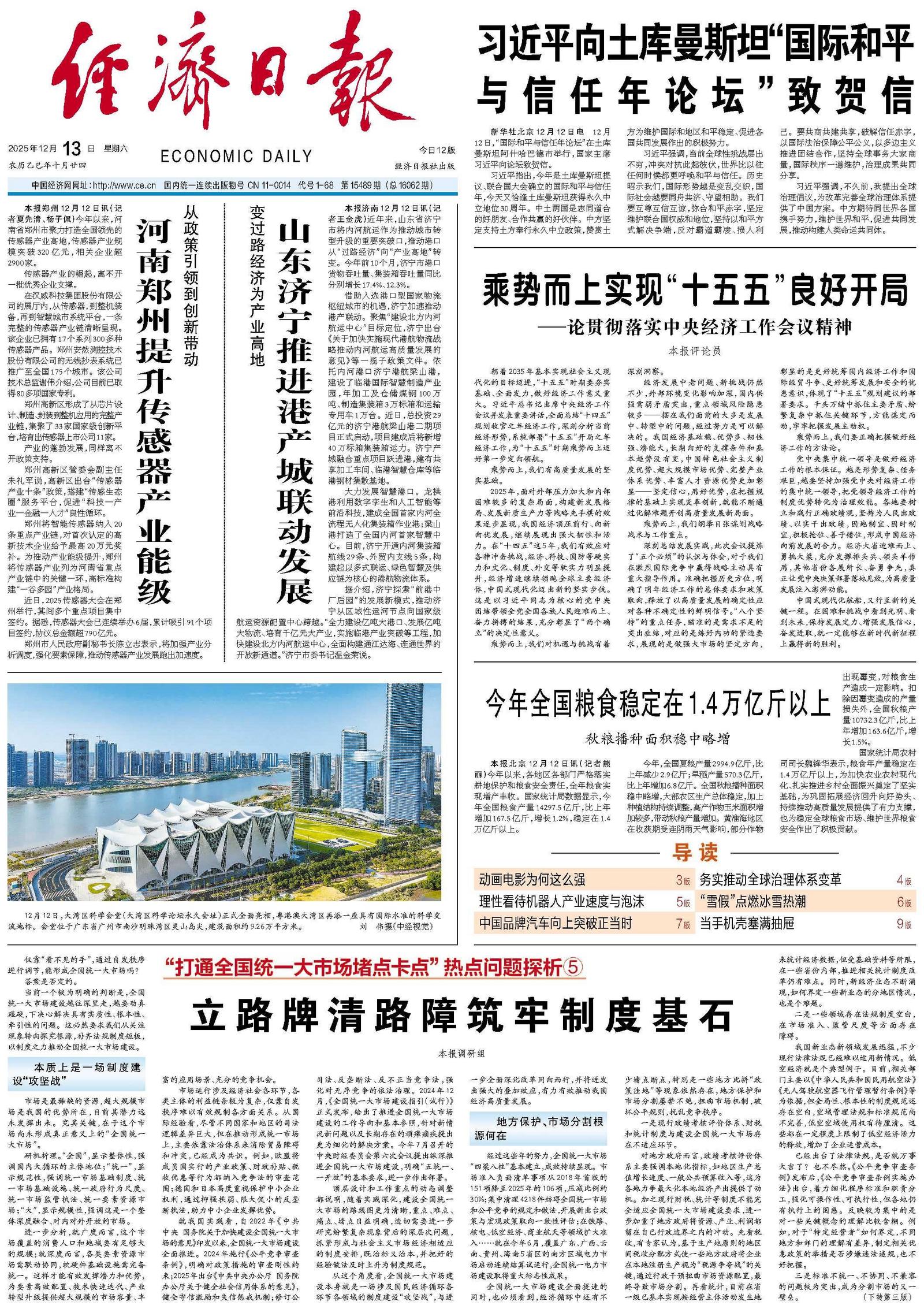 深刻总结发展实践,此次会议提炼了“五个必须”的认识与体会,对于我们在激烈国际竞争中赢得战略主动具有重大指导作用。准确把握历史方位,明确了明年经济工作的总体要求和政策取向,释放了以高质量发展的确定性应对各种不确定性的鲜明信号。“八个坚持”的重点任务,瞄准的是需求不足的突出症结,对应的是练好内功的紧迫要求,展现的是做强大市场的坚定方向,彰显的是更好统筹国内经济工作和国际经贸斗争、更好统筹发展和安全的忧患意识,体现了“十五五”规划建议的部署要求。千头万绪中抓住主要矛盾、纷繁复杂中抓住关键环节,方能谋定而动,牢牢把握发展主动权。