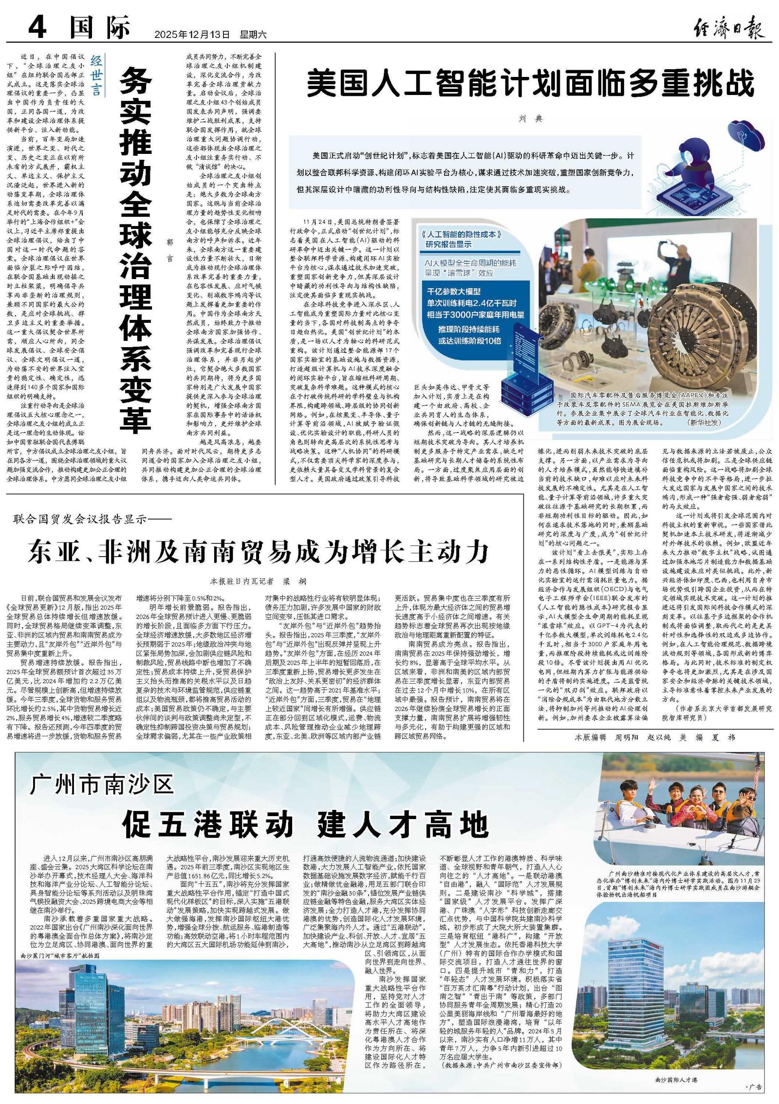 该计划“看上去很美”,实际上存在一系列结构性矛盾。一是能源与算力的恶性循环。AI模型训练与自动化实验室的运行需消耗巨量电力。据经济合作与发展组织(OECD)与电气电子工程师学会(IEEE)联合发布的《人工智能的隐性成本》研究报告显示,AI大模型全生命周期的能耗呈现“滚雪球”效应。以GPT-4为代表的千亿参数大模型,单次训练耗电2.4亿千瓦时,相当于3000户家庭年用电量,而推理阶段持续能耗或达训练阶段10倍。尽管该计划提出用AI优化电网,但短期内算力扩张与能源供给的矛盾将制约实施进度。二是监管统一化的“双刃剑”效应。联邦政府以“消除合规成本”为由取代地方分散立法,将抑制加州等州推动的AI伦理创新。例如,加州要求企业披露算法偏见与数据来源的立法若被废止,公众信任危机或将加剧。三是全球供应链面临重构风险。这一战略将加剧全球科技竞争中的不平等格局,进一步拉大发达国家与发展中国家之间的技术鸿沟,形成一种“强者愈强、弱者愈弱”的马太效应。