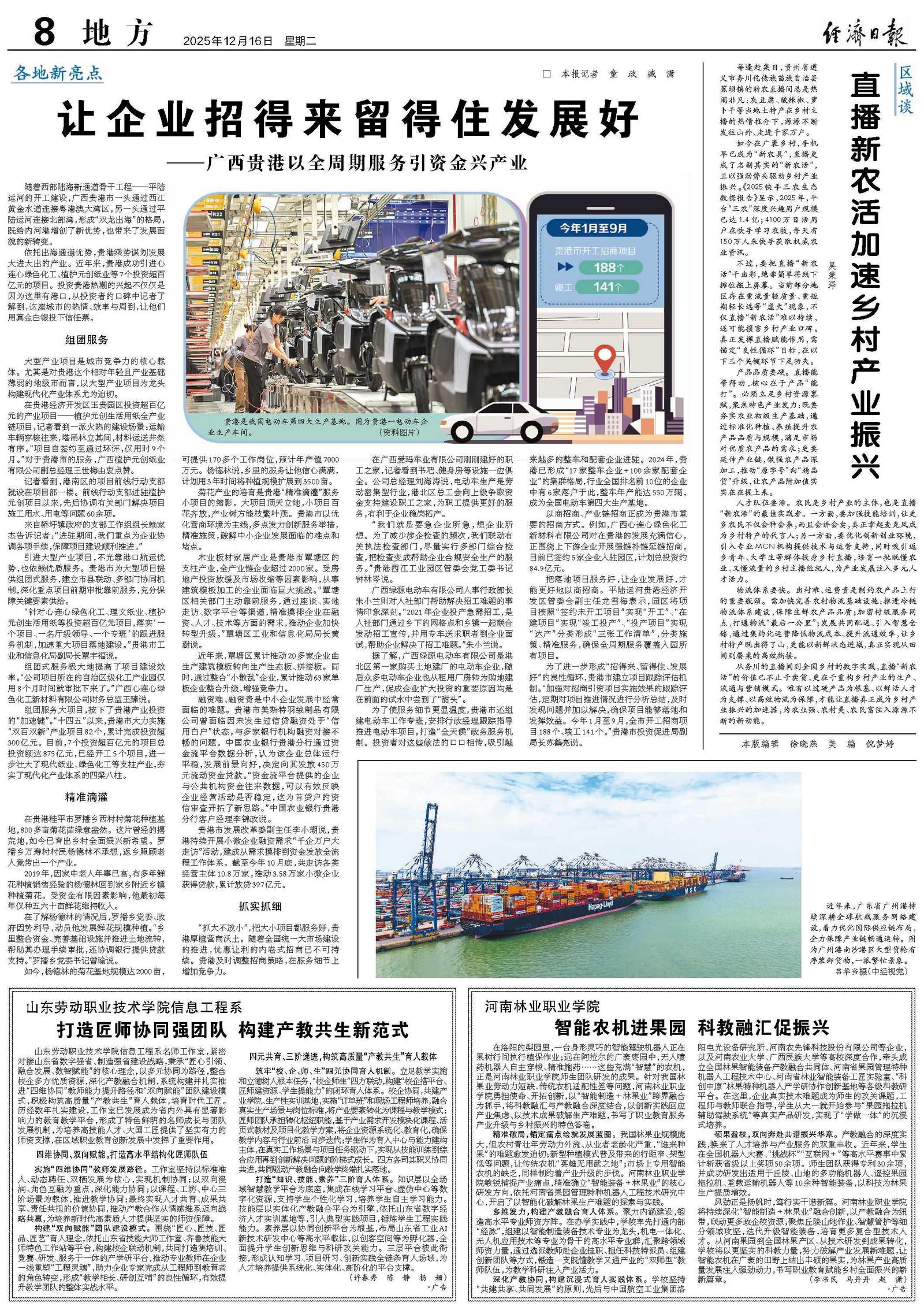 “抓大不放小”,把大小项目都服务好,贵港厚植营商沃土。随着全国统一大市场建设的推进,优惠让利的内卷式招商已不可持续。贵港及时调整招商策略,在服务细节上增加竞争力。