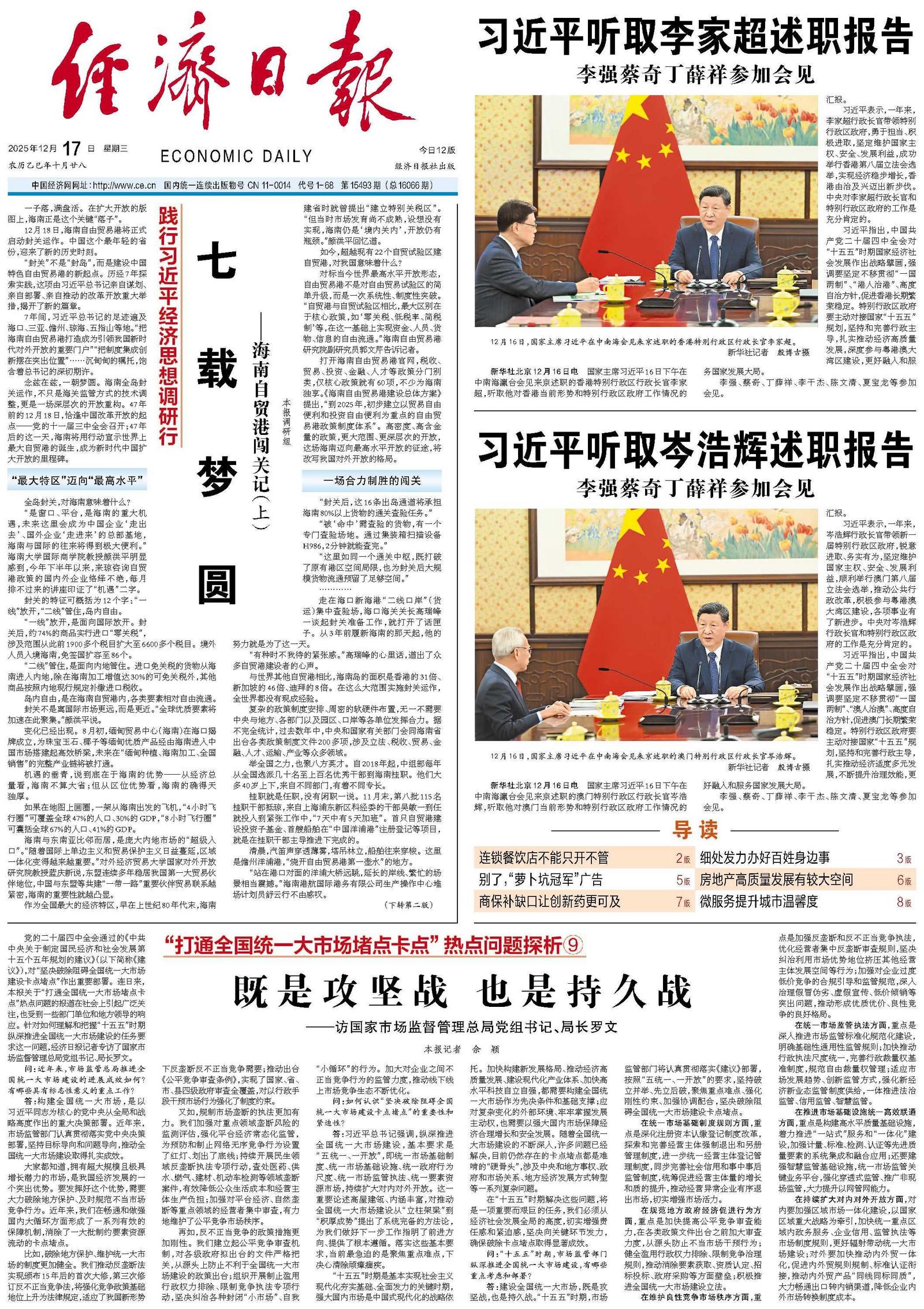 党的二十届四中全会通过的《中共中央关于制定国民经济和社会发展第十五个五年规划的建议》(以下简称《建议》),对“坚决破除阻碍全国统一大市场建设卡点堵点”作出重要部署。连日来,本报关于“打通全国统一大市场堵点卡点”热点问题的报道在社会上引起广泛关注,也受到一些部门单位和地方领导的响应。针对如何理解和把握“十五五”时期纵深推进全国统一大市场建设的任务要求这一问题,经济日报记者专访了国家市场监督管理总局党组书记、局长罗文。