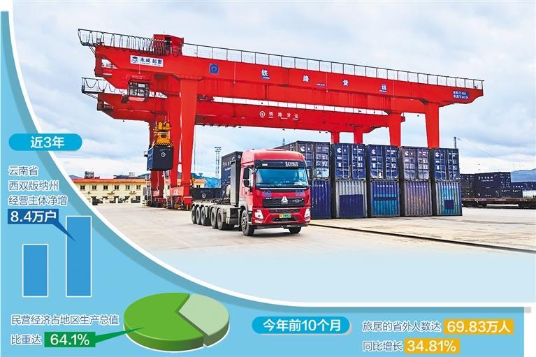 西双版纳州委书记朱家伟表示,西双版纳走出了一条“生态立州、产业富州、开放活州、人才兴州、文化润州、创新强州、依法治州”的发展之路。近3年全州经营主体净增8.4万户,增长55%,民营经济占地区生产总值比重达64.1%。
