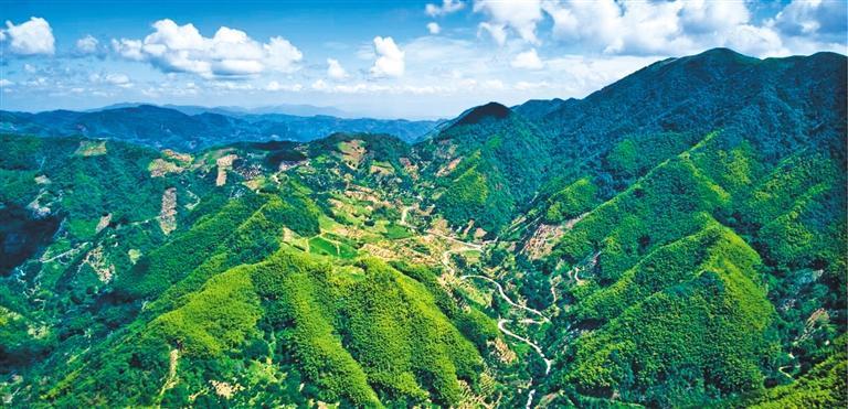 浙江省诸暨市东白湖镇万亩香榧与周围的青山绿水融为一体。近年来,诸暨坚持生态优先,走水土保持一体化发展之路,积极推动农文旅体商深度融合。截至今年10月底,东白湖镇香榧产业加上露营基地、盆景、民宿等产业收入突破2亿元,吸引游客20万人次。