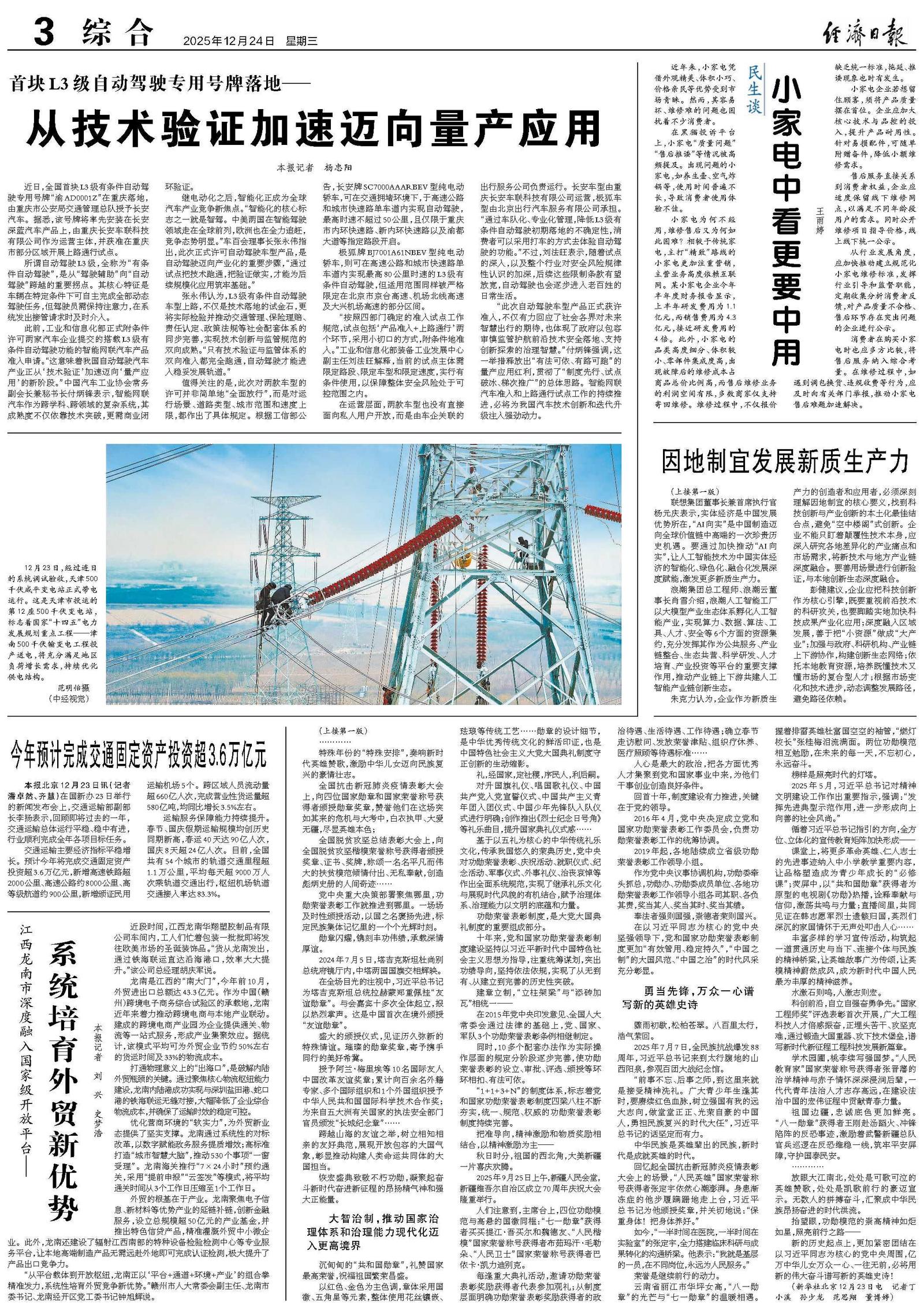 本报北京12月23日讯(记者潘卓然、齐慧)在国新办23日举行的新闻发布会上,交通运输部副部长李扬表示,回顾即将过去的一年,交通运输总体运行平稳、稳中有进,行业顺利完成全年各项目标任务。