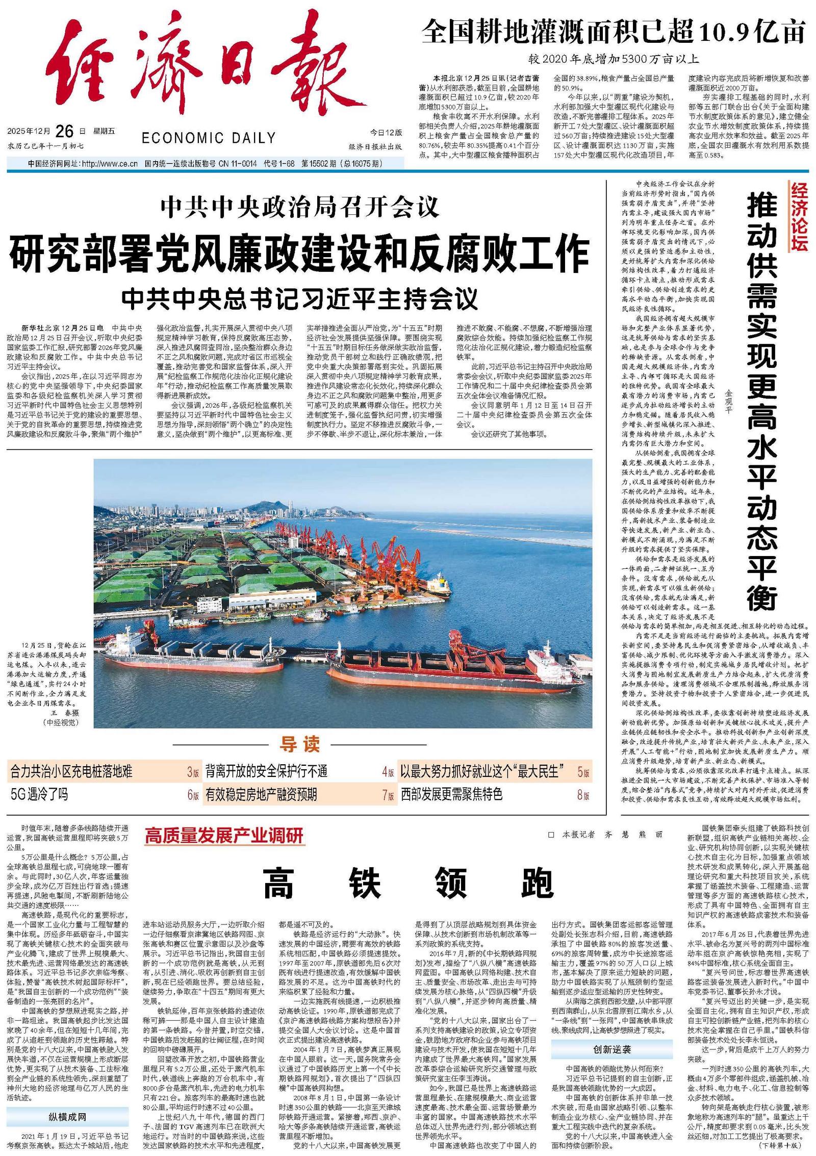 新华社北京12月25日电 中共中央政治局12月25日召开会议,听取中央纪委国家监委工作汇报,研究部署2026年党风廉政建设和反腐败工作。中共中央总书记习近平主持会议。