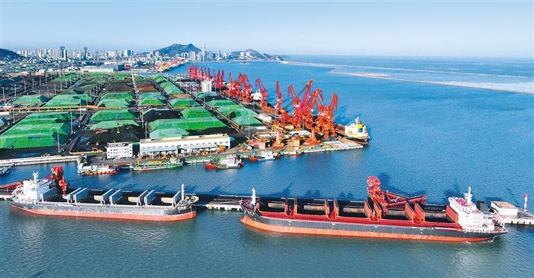 12月25日,货轮在江苏省连云港港煤炭码头卸运电煤。入冬以来,连云港港加大运输力度,开通“绿色通道”,实行24小时不间断作业,全力满足发电企业冬日用煤需求。