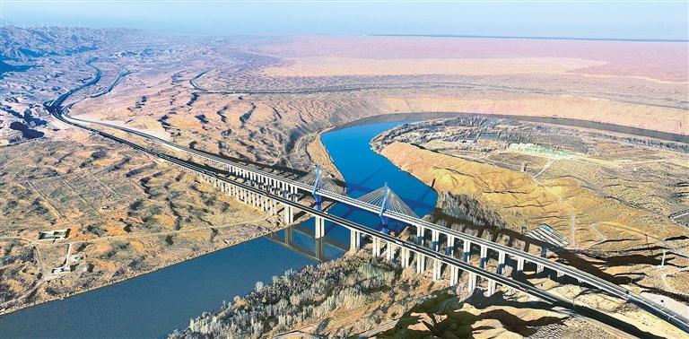 12月27日,俯瞰位于宁夏中卫市沙坡头区的黑山峡黄河特大桥。近日,该大桥主体工程基本完工,即将建成通车。项目建成后,将进一步完善西北区域公路网络。袁宏彦摄(中经视觉)