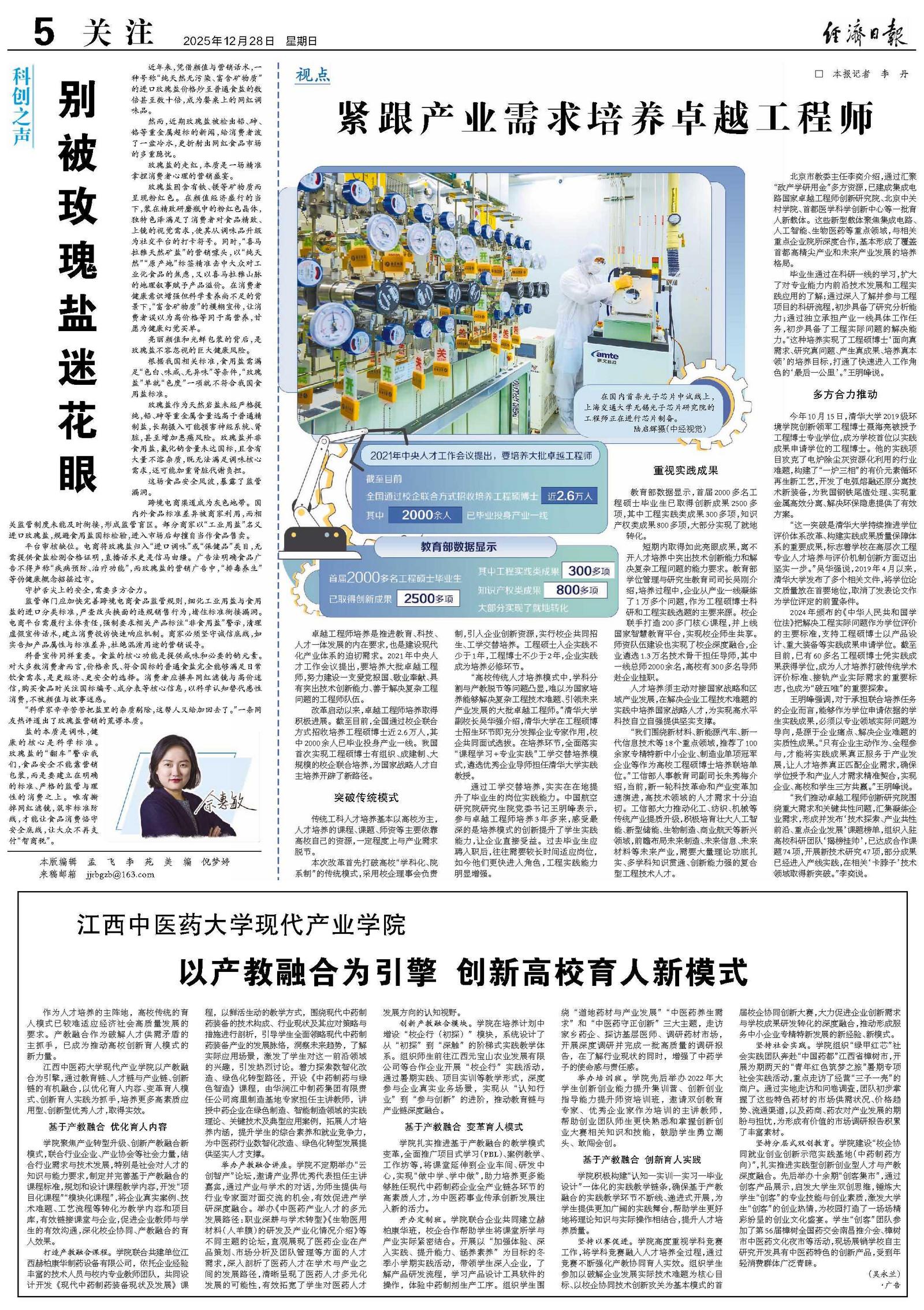 江西中医药大学现代产业学院以产教融合为引擎,通过教育链、人才链与产业链、创新链的有机融合,以优化育人内容、变革育人模式、创新育人实践为抓手,培养更多高素质应用型、创新型优秀人才,取得实效。
