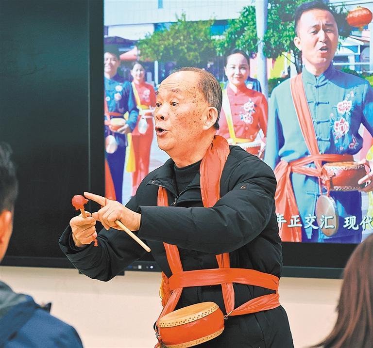 “打起鼓喂,敲起锣,报春个之人爱唱春歌……”在江西省萍乡市湘东区御泉湾小学的社团活动室内,学生们个个精神抖擞,腹系小鼓,手持鼓签,用萍乡方言唱着新编春锣《唱春忙》。稚嫩的唱腔、铿锵的节奏,让这门古老的非遗艺术绽放出蓬勃的生机与活力。