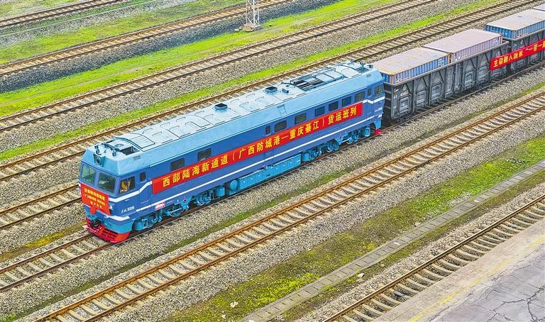 12月29日,一列满载货物的陆海新通道货运班列驶入重庆市綦江区北渡铝产业园,标志着西部陆海新通道“广西防城港—重庆綦江”货运班列顺利开通运行,我国西部地区面向东盟、非洲的国际原材料供应通道进一步畅通。陈星宇摄(中经视觉)