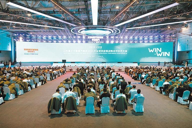 冬月泉城,共襄盛举。2025年12月18日至21日,以“科技引领 全链共赢”为主题的山东重工中国重汽集团2026年合作伙伴大会在山东国际会展中心成功举办,期间同步召开全球供应链战略合作伙伴大会,并举办公众开放日活动。本次盛会规模创下中国重汽历年之最,展品数量与覆盖范围均刷新纪录,4200多家合作伙伴齐聚济南,共鉴发展成果、共商合作大计、共绘发展新蓝图。