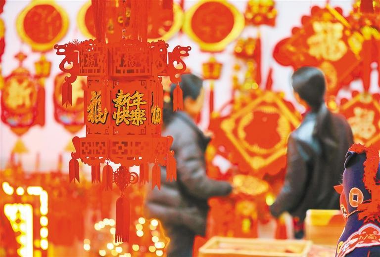 2025年12月23日,浙江省嘉兴市南湖区开盛小商品批发市场,消费者在选购节日挂件。