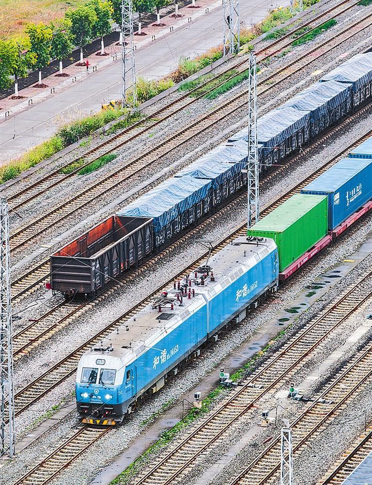 一月一日,一列满载货物的中欧班列在重庆兴隆场编组站等待发车,这标志着西南地区新年首趟中欧班列即将正式启程,持续为亚欧大陆互联互通与经贸合作注入新动力。新华社记者 唐 奕摄
