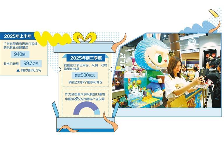 近年来,中国潮玩火爆全球。2025年前三季度,我国节日用品、玩偶、动物造型的玩具出口额超过500亿元,销往200多个国家和地区,其中许多都属于国货潮品。