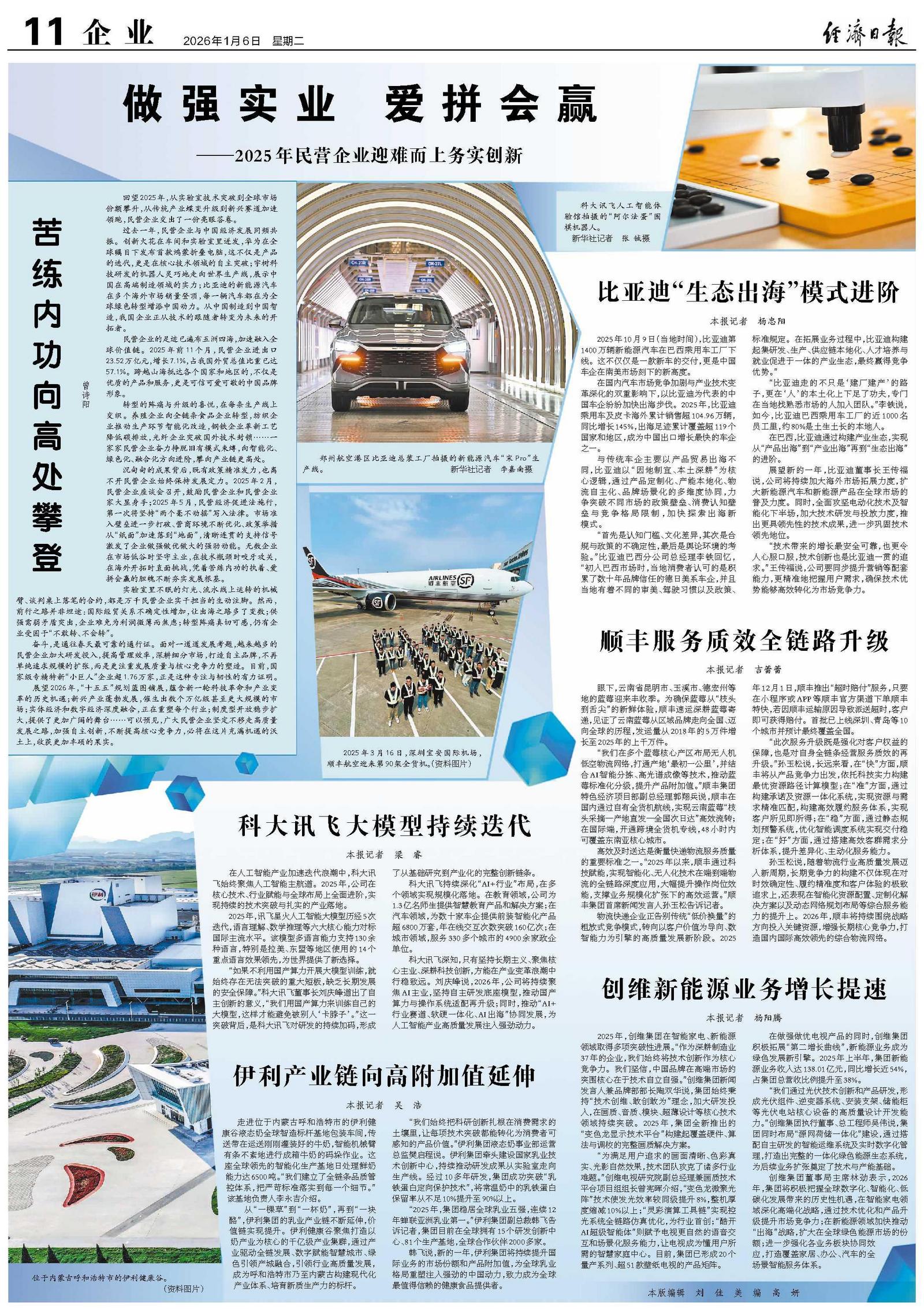 孙玉松说,随着物流行业高质量发展迈入新周期,长期竞争力的构建不仅体现在对时效确定性、履约精准度和客户体验的极致追求上,还表现在智能化资源配置、定制化解决方案以及动态网络规划布局等综合服务能力的提升上。2026年,顺丰将持续围绕战略方向投入关键资源,增强长期核心竞争力,打造国内国际高效领先的综合物流网络。