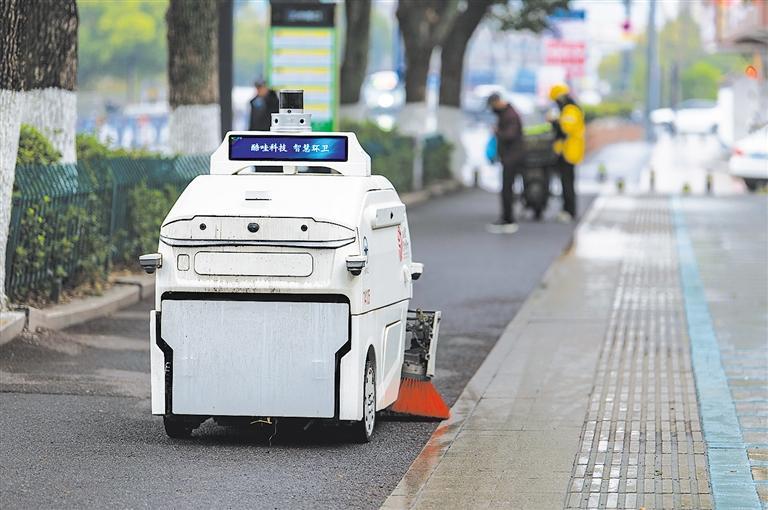 1月5日,浙江省永康市丽州路人行道上,一台造型可爱的环卫机器人在自动洗扫路面。据了解,环卫机器人车顶与车身四周分布摄像头和传感器,可实现红绿灯识别响应、障碍物动态检测、垃圾识别和追踪等功能,提高了城市保洁智能化水平。胡肖飞摄(中经视觉)