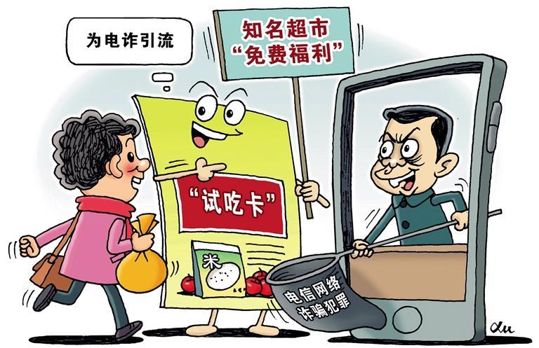 近来,全国多地出现了一种“试吃卡”新型骗局,一些不法分子打着知名超市“免费福利”的幌子,为电信网络诈骗犯罪引流。山东公安机关接连侦破多起此类案件,部分从事线下推广营销的地推人员受诈骗团伙遥控,引诱群众下载陌生APP或加入“福利群”,实施刷单返利、盗刷银行卡等诈骗行为。为有效治理“试吃卡”及类似骗局,需构建多方联动的社会共治防线。相关部门加强监管与打击,深挖地推与线上诈骗组织的勾结网络,开展精准反诈宣传;加强线上线下可疑活动审核与巡查,及时阻断犯罪链条。社区与基层组织要进一步织密基层治理网络,及时清理隐患并进行案例警示。(时 锋)