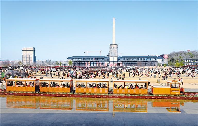 1月11日,游客在浙江省杭州市大运河杭钢公园游玩。公园所在地原是拥有60多年历史的杭州钢铁厂,当地将工业遗产与现代文旅消费深度融合,把这里打造成工业文化保护利用的城市新地标。徐根柱摄(中经视觉)