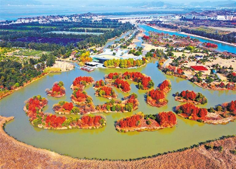 1月11日,浙江省玉环市漩门湾国家湿地公园层林尽染,美不胜收。近年来,玉环市加大湿地生态保护力度,打造集休闲旅游与生态保护于一体的湿地公园,推动城市能级与民生福祉双提升。段俊利摄(中经视觉)