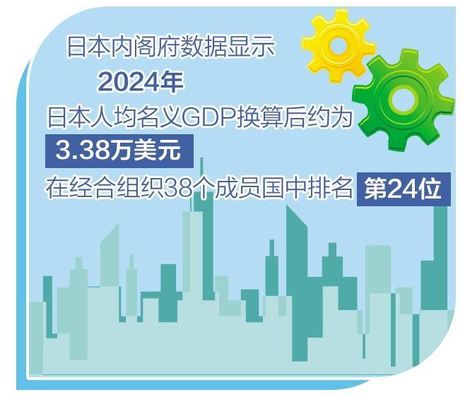 日本内阁府2025年12月23日发布的数据显示,2024年日本人均名义国内生产总值(GDP)换算后约为3.38万美元,在经济合作与发展组织(OECD)38个成员国中排名第24位,比2023年创下历史低点的第22位下滑两名,再创最差纪录。国际货币基金组织(IMF)此前测算,预计2025年日本人均GDP排名将下滑至全球第38位。这与日本经济长期低迷、人口减少以及日元贬值的基本面吻合,反映出日本经济顽疾严重,经济动力不足、少子老龄化、货币政策副作用等问题难解。