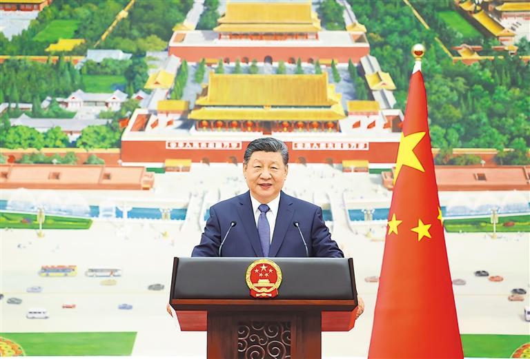 习近平指出,今天的世界,百年变局加速演进,国际形势变乱交织,全球性挑战更加突出。分裂对抗、零和博弈注定没有出路,让世界重回丛林法则不得人心,同球共济、团结合作才是唯一正确选择。我提出全球治理倡议,旨在推动构建更加公正合理的全球治理体系。中国将始终站在历史正确一边,以人民之心为心、以天下之利为利,同各国一道推动构建人类命运共同体。