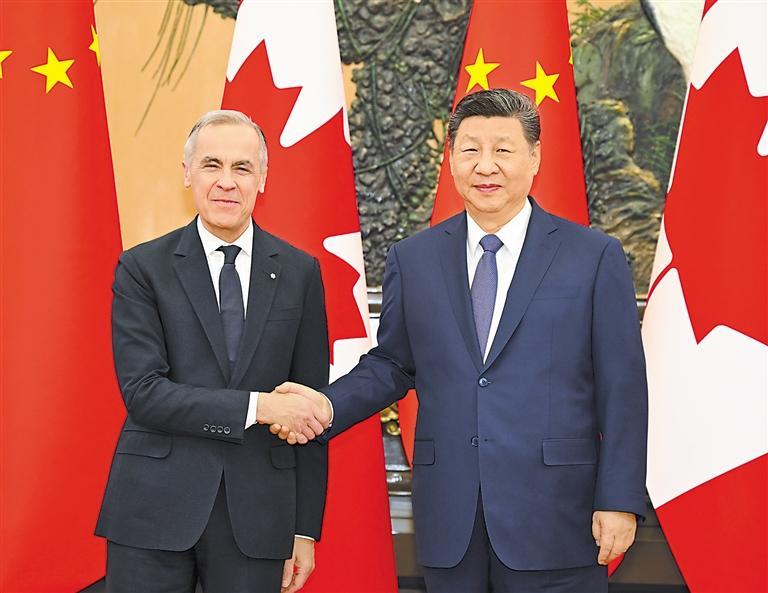 习近平指出,去年10月,我们在韩国庆州会见,开启了中加关系转圜向好的新局面。双方就恢复和重启各领域合作深入探讨,取得积极成果。中加关系健康稳定发展符合两国共同利益,也有利于世界和平稳定和发展繁荣。双方要本着对历史、对人民、对世界负责任的态度,推进构建中加新型战略伙伴关系,推动中加关系迈入健康、稳定、可持续的发展轨道,更好造福两国人民。