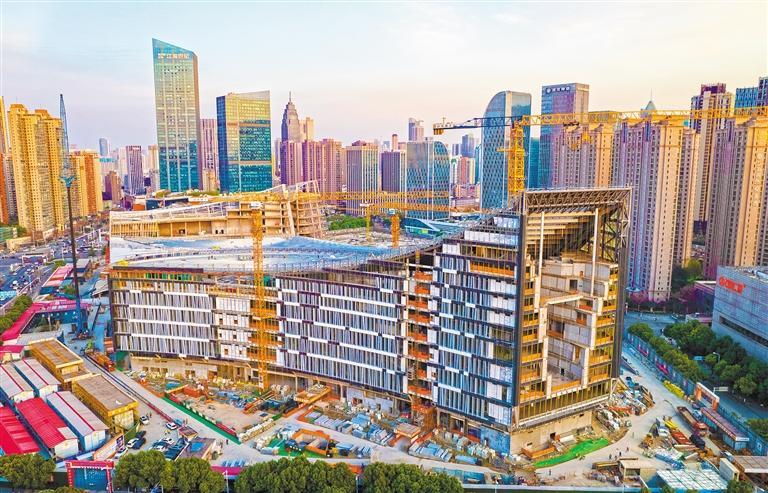 1月10日拍摄的湖北省武汉图书馆新馆项目建设现场,金属屋面施工稳步推进。