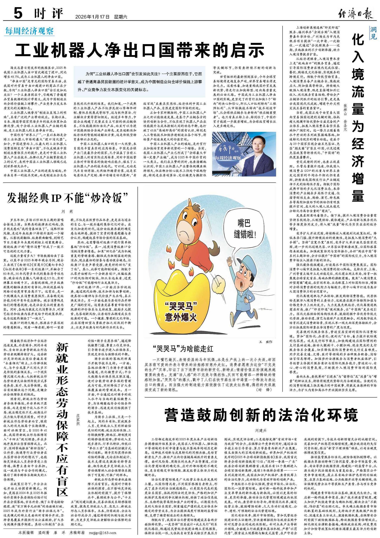 世贸组织的最新预测显示,今年全球贸易环境将更趋复杂严峻,世界贸易增长将更加乏力。这意味着,加速重构我国外贸发展新优势,将是行业加快转型、迈向高质量发展的必由之路。中国成为工业机器人净出口国的实践,更坚定了外贸行业加快3个“转向”的决心和信心,即从人口红利转向“工程师红利”、从市场换技术转向“技术创造市场”、从全球供应链参与者转向“供应链重塑者”。也只有真正转上去、转到位了,中国外贸才能进一步提质增效,为全球经贸增长注入更多确定性。