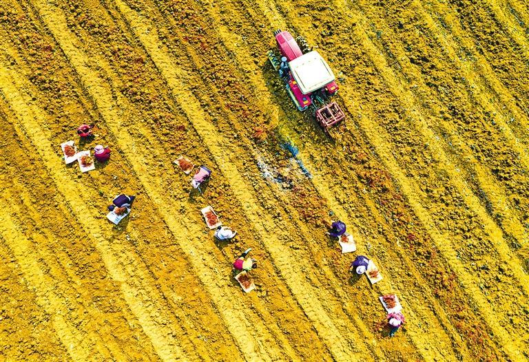 1月17日,贵州省黔西市洪水镇中药材基地,农民在采收丹参。近年来,洪水镇优化农业产业结构,因地制宜发展中药材种植,助力农民增收。史开心摄(中经视觉)