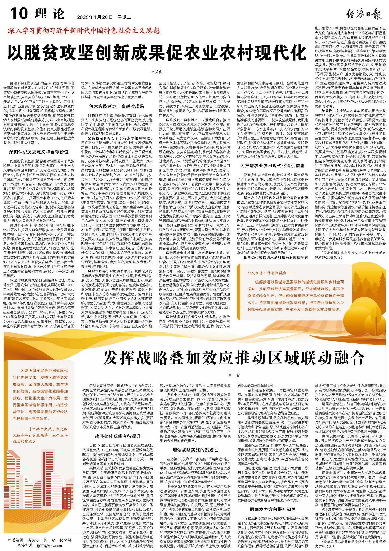 经过8年脱贫攻坚战的奋斗,我国2020年底全面消除绝对贫困。在之后的5年过渡期里,脱贫攻坚成果持续巩固拓展,我国牢牢守住了不发生规模性返贫致贫的底线。2026年是“十五五”开局之年,做好“三农”工作至关重要。习近平总书记作出重要指示,强调“锚定农业农村现代化,扎实推进乡村全面振兴,推动城乡融合发展”“要持续巩固拓展脱贫攻坚成果,把常态化帮扶纳入乡村振兴战略统筹实施,守牢不发生规模性返贫致贫底线”。迈入“十五五”时期,必须深刻认识打赢脱贫攻坚战、守住不发生规模性返贫致贫底线的重要意义,深入总结这一伟大历史进程中取得的实践创新成果,为新征程上接续推进农业农村现代化提供指引。