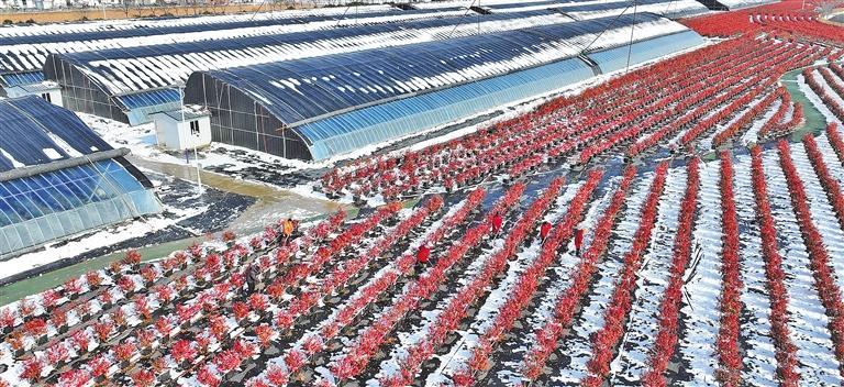 1月20日,江苏省连云港市灌云县伊山镇蓝莓种植基地,村民正在清理积雪。1月18日起,灌云县出现降雪天气,对农业生产带来一定影响,当地积极采取措施,全力保障农业生产。 吴正祥摄 (中经视觉)