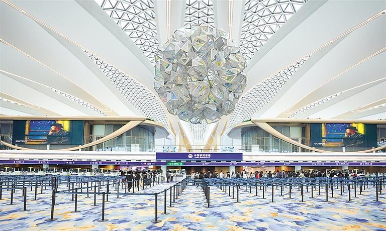 1月22日拍摄的广州白云国际机场T3航站楼国际区域。该区域当日正式启用,白云出入境边防检查站在T3航站楼边检区域共设置79条查验通道,快捷通道占比达42%。黎锋俊摄(中经视觉)