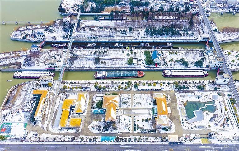 1月21日,满载货物的运输船有序通过京杭大运河江苏省宿迁市宿豫区皂河船闸。春节临近,在京杭大运河江苏宿豫段,装载煤炭、建材等货物的船舶来往如梭,保障生产生活物资供应。徐 瑞摄(中经视觉)