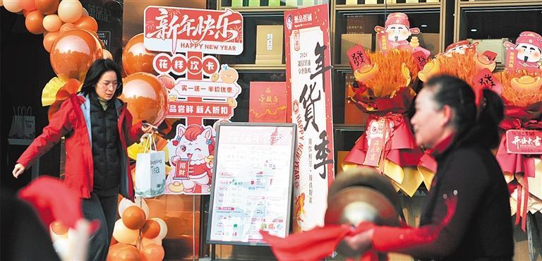 1月22日,市民在湖北省“三城联动年货季”宜昌市夷陵区萧品茶铺欣映像店购买茶饮品。