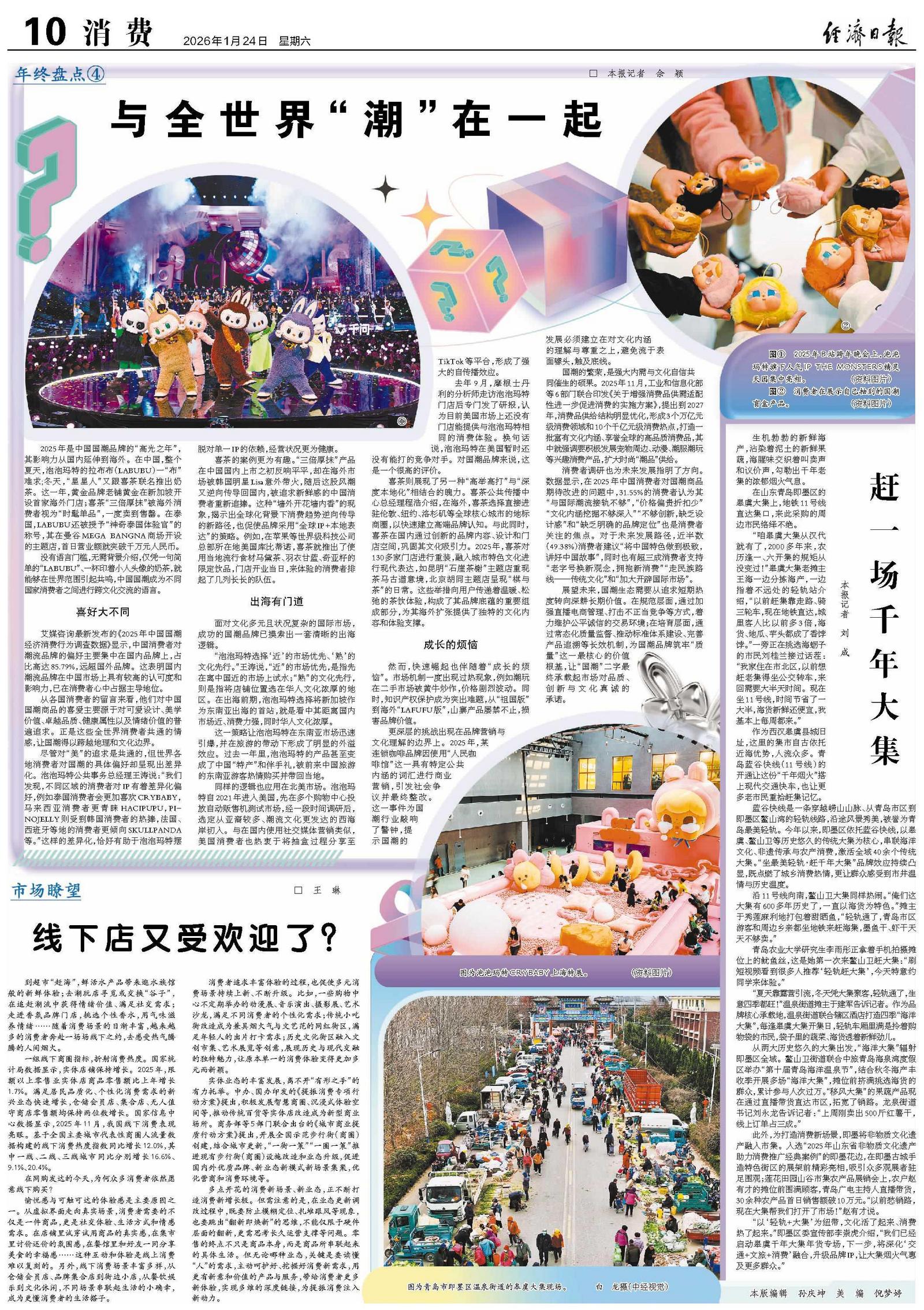 2025年是中国国潮品牌的“高光之年”,其影响力从国内延伸到海外。在中国,整个夏天,泡泡玛特的拉布布(LABUBU)一“布”难求;冬天,“星星人”又跟喜茶联名推出奶茶。这一年,黄金品牌老铺黄金在新加坡开设首家海外门店;喜茶“三倍厚抹”被海外消费者视为“时髦单品”,一度卖到售罄。在泰国,LABUBU还被授予“神奇泰国体验官”的称号,其在曼谷MEGA BANGNA商场开设的主题店,首日营业额就突破千万元人民币。