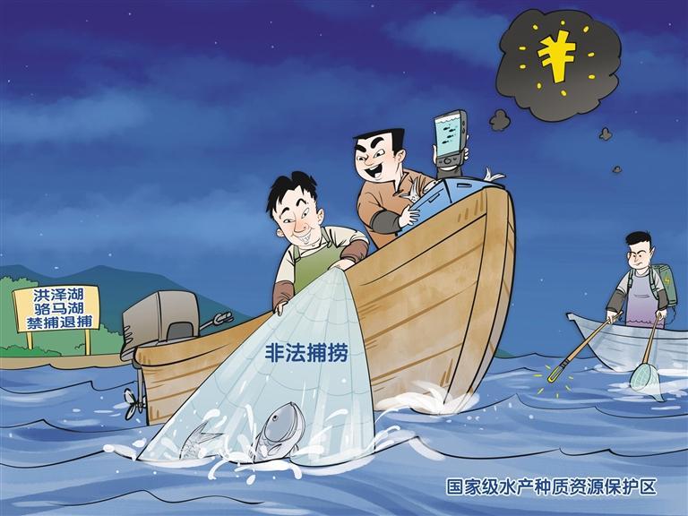 江苏洪泽湖、骆马湖是南水北调东线重要调蓄湖泊,拥有国家级水产种质资源保护区。自2020年、2021年先后实施禁捕退捕以来,渔业资源日趋丰富,也引起不法分子觊觎。近期,有媒体调查发现,在相关部门严打严控的形势下,仍有不法分子从事非法捕捞,一晚动辄获利数千元乃至上万元。且近两年,非法捕捞趋于组织化团伙化,捕捞、转运、销赃等环节分工明确。必须进一步加大对偷捕的打击力度,重点加大“三无”快艇清理取缔力度。强化市场销售端监管,加强对水产品交易市场及相关生产经营主体的日常检查,严厉查处销售非法捕捞水产品的违法行为。(时 锋)