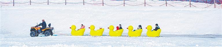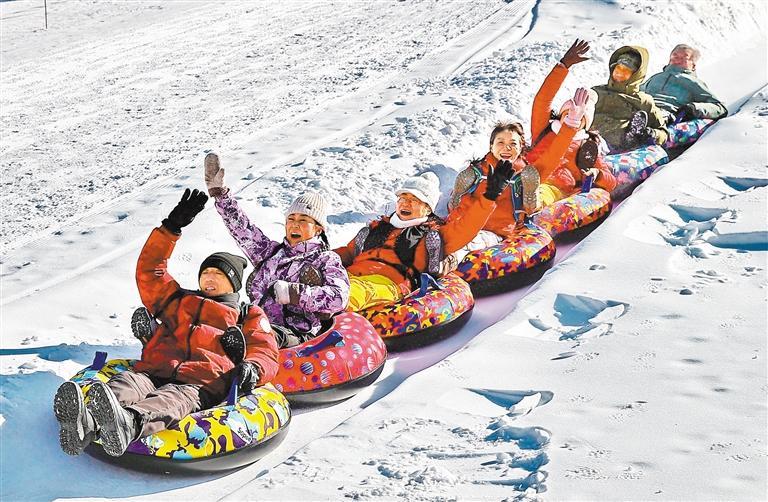 1月11日,河北省秦皇岛市石门寨镇老君顶景区,游客坐上滑雪圈,畅享冰雪运动带来的快乐。