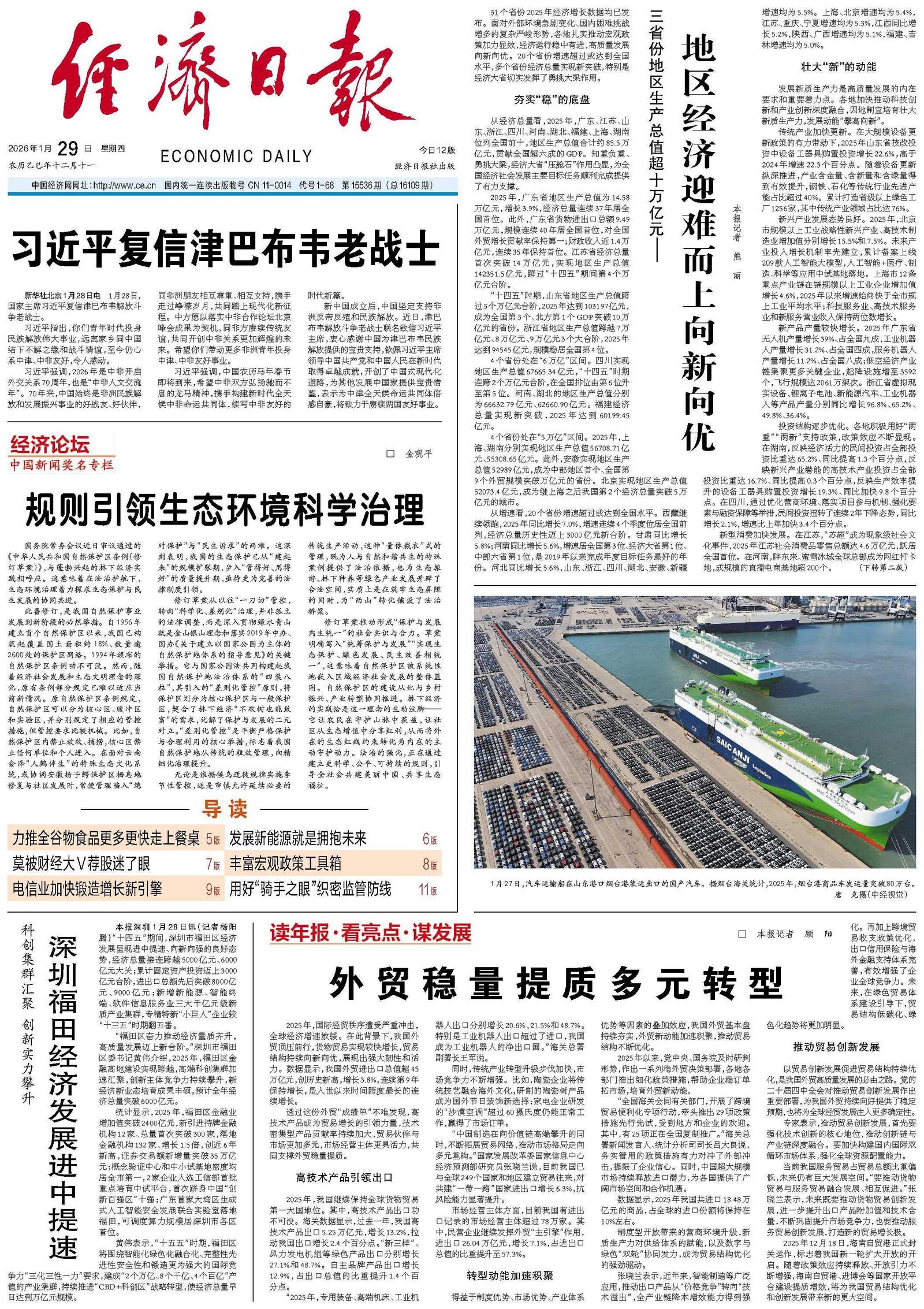“福田区奋力推动经济量质齐升,高质量发展迈上新台阶。”深圳市福田区委书记黄伟介绍,2025年,福田区金融高地建设实现跨越,高端科创集群加速汇聚,创新主体竞争力持续攀升,新经济新业态培育成果丰硕,预计全年经济总量突破6000亿元。