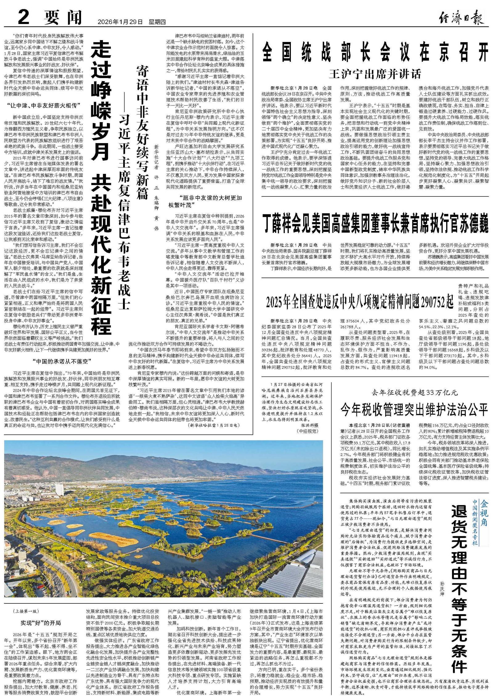 新华社北京1月28日电 全国统战部长会议28日在京召开。中共中央政治局常委、全国政协主席王沪宁出席并讲话。他表示,要以习近平新时代中国特色社会主义思想为指导,深刻领悟“两个确立”的决定性意义、坚决做到“两个维护”,全面贯彻落实党的二十届四中全会精神,更加坚决有力地贯彻落实党中央关于统战工作的决策部署,为实现“十五五”良好开局、推进中国式现代化广泛凝心聚力。