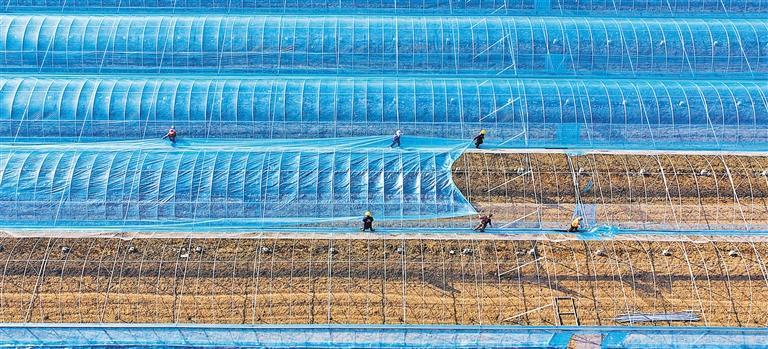 1月13日,江苏省海安市墩头镇西湖村,村民在新建葡萄种植大棚。连日来,当地紧抓冬闲“窗口期”,积极推进农业生产设施的整修与新建工作。