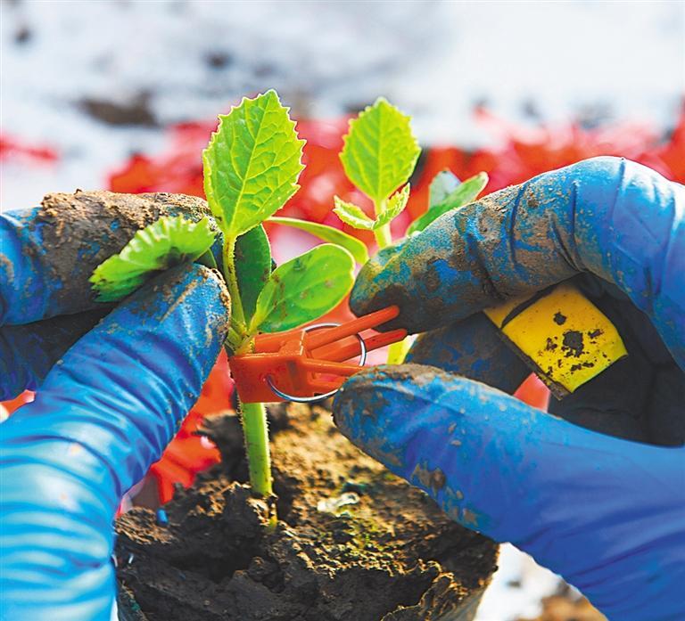 ◀1月20日,村民在河北省新乐市邯邰镇小流村国峰西瓜合作社嫁接甜瓜苗。