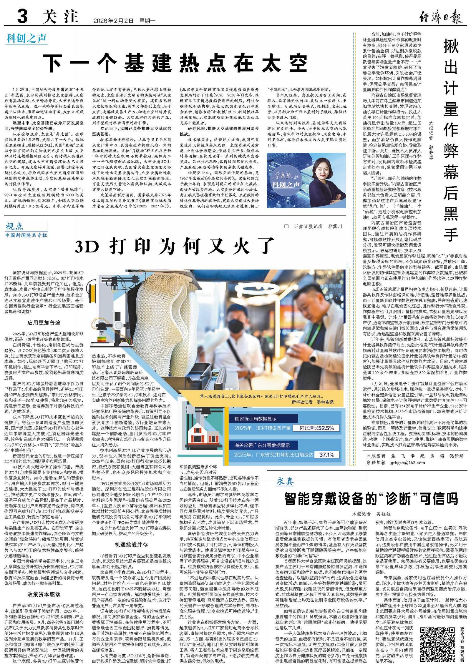 从安全维度看,太空是“高边疆”。全球在轨卫星约1.5万颗,美国占了一大半。低轨道卫星拥堵、碰撞风险加剧,美国“星链”卫星与中国空间站的危险接近已多次上演,太空碎片的连锁碰撞风险还有可能封锁人类通往太空的道路,建立太空交通管理体系已成当务之急。开展太空碎片监测、预警、清除等关键技术攻关,将为我国在太空交通管理国际规则制定中赢得主动,为空间基础设施安全运行提供保障。