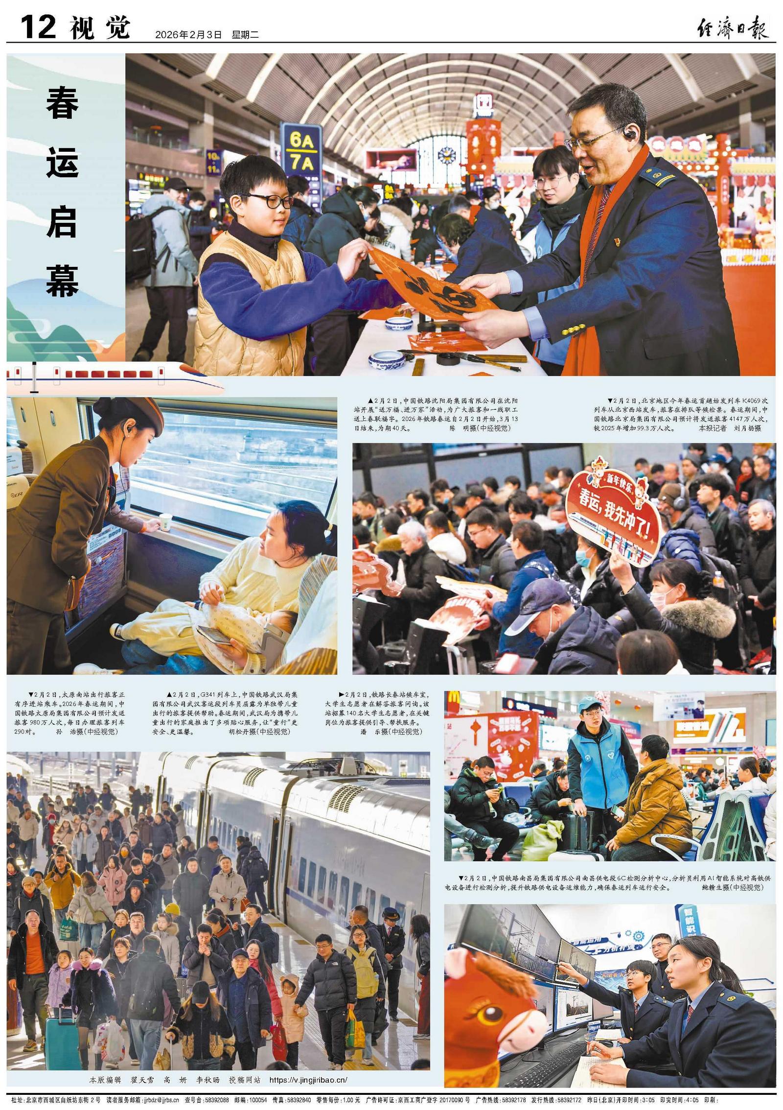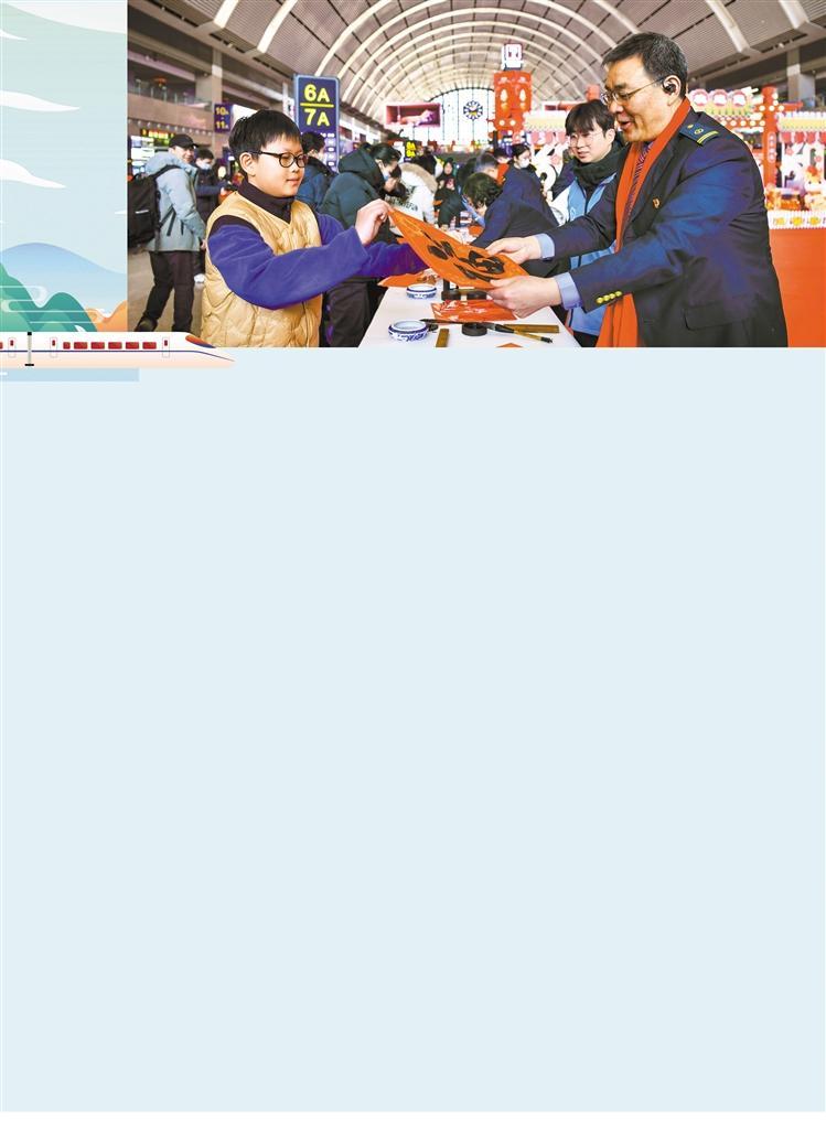 2月2日,中国铁路沈阳局集团有限公司在沈阳站开展“送万福、进万家”活动,为广大旅客和一线职工送上春联福字。2026年铁路春运自2月2日开始,3月13日结束,为期40天。陈 明摄(中经视觉)