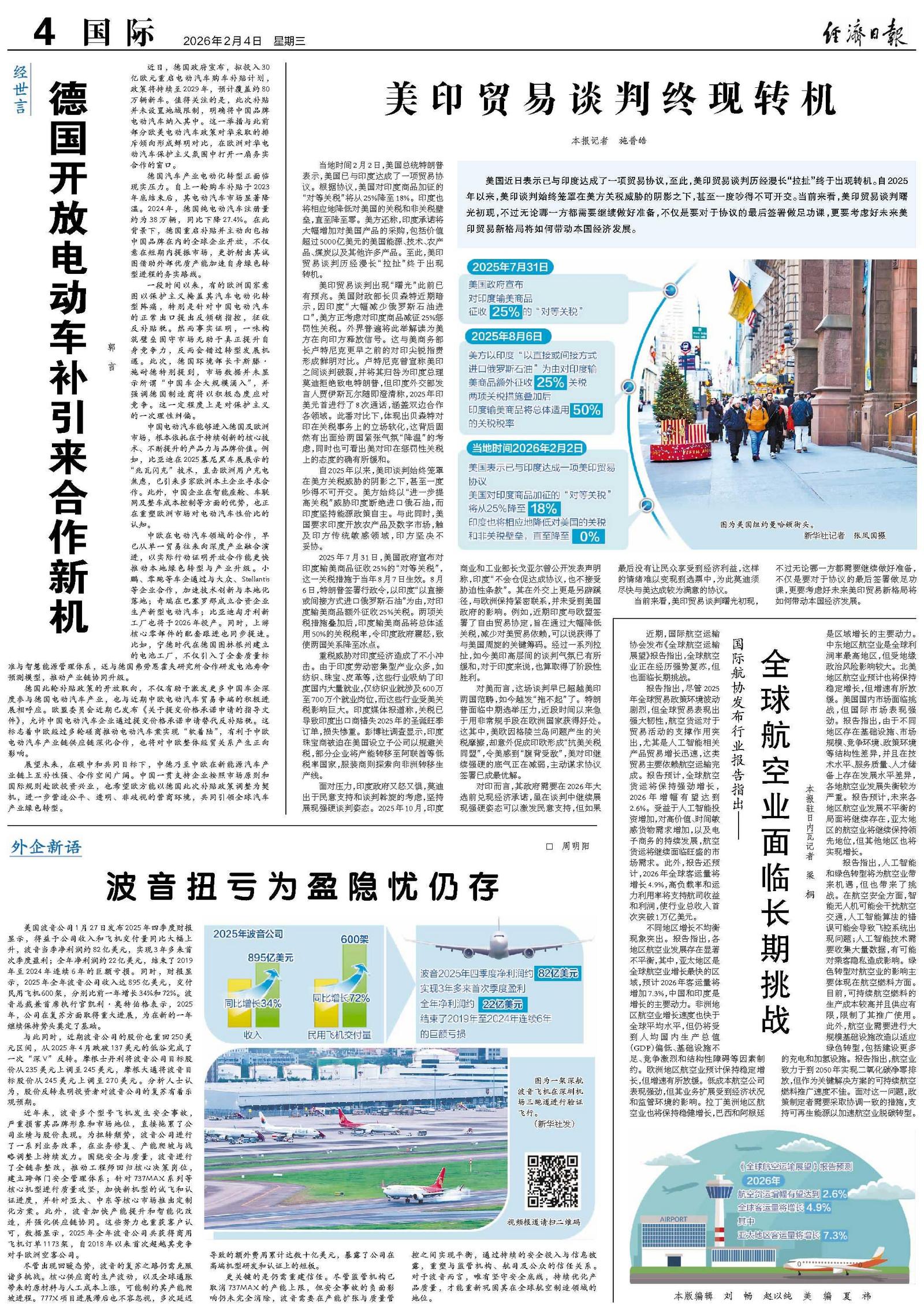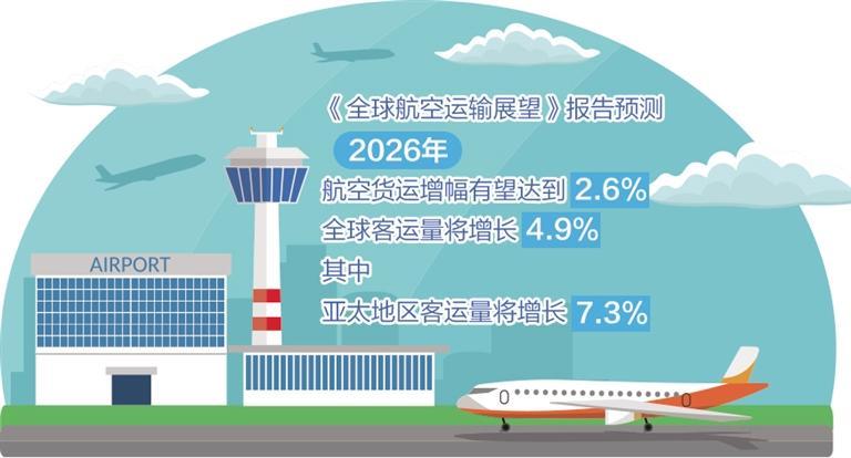 报告指出,尽管2025年全球贸易政策环境波动剧烈,但全球贸易表现出强大韧性,航空货运对于贸易活动的支撑作用突出,尤其是人工智能相关产品贸易增长迅速,这类贸易主要依赖航空运输完成。报告预计,全球航空货运将保持强劲增长,2026年增幅有望达到2.6%。受益于人工智能投资增加,对高价值、时间敏感货物需求增加,以及电子商务的持续发展,航空货运将继续面临旺盛的市场需求。此外,报告还预计,2026年全球客运量将增长4.9%,高负载率和运力利用率将支持航司收益和利润,使行业总收入首次突破1万亿美元。