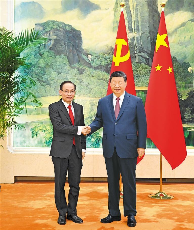习近平指出,中越两党坚持相互通报彼此重大政治议程的优良传统,体现了中越“同志加兄弟”的特殊友好情谊和高度政治互信。不久前,我同苏林总书记通话,围绕进一步推进具有战略意义的中越命运共同体建设深入交换意见,达成重要共识。相信在以苏林同志为首的越共中央坚强领导下,越南党、国家、人民一定能够胜利完成越共十四大确定的各项目标任务。