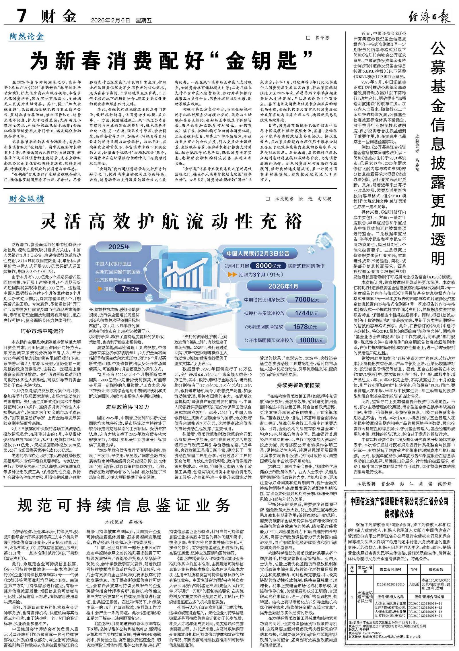 “2月仍然是信贷投放较为集中的月份,叠加春节前取现因素影响,市场对流动性的需求增加。央行通过买断式逆回购和中期借贷便利(MLF)操作,连续多月向市场注入中短期流动性,保障岁末年初金融市场平稳运行。”招联首席经济学家、上海金融与发展实验室副主任董希淼说。